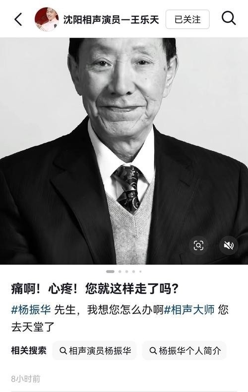 杨振华走了,带走的是一个时代的回响,留下的是永不褪色的艺术火种。世上少了一位德艺双馨的相声大家,也少了一位孜孜不倦的文化摆渡人。愿先生魂归杏林,笑音长驻人间。